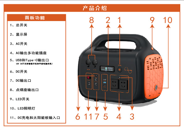 - ഒരേ സമയം ചാർജ് ചെയ്യാനും ഡിസ്ചാർജ് ചെയ്യാനും ഇത് പിന്തുണയ്ക്കുന്നു. ഇതിന് വിപുലമായ ഉപയോഗങ്ങളുണ്ട്. ഇത് ഒരു ഓൺലൈൻ യുപിഎസ് പവർ സപ്ലൈ ആയി അല്ലെങ്കിൽ ഔട്ട്ഡോർ എമർജൻസി ബാക്കപ്പ് പവർ സപ്ലൈ ആയി ഉപയോഗിക്കാം. ഇതിന് ഇൻഡോർ മെഡിക്കൽ ഉപകരണങ്ങൾ, ചെറിയ പ്രിന്ററുകൾ, വിവിധ വിളക്കുകൾ, ചെറിയ ഫിഷ് ടാങ്ക് ഹീറ്ററുകൾ, നോട്ട്ബുക്കുകൾ, ഔട്ട്ഡോർ ക്യാമ്പിംഗ് എന്നിവ കാണാൻ കഴിയും. ഫോട്ടോഗ്രാഫി, ഫയർ എമർജൻസി, എമർജൻസി റെസ്ക്യൂ, ഡിസാസ്റ്റർ റിലീഫ് തുടങ്ങിയ സന്ദർഭങ്ങളിൽ ലൈറ്റിംഗും എസി പവർ സപ്ലൈയും ആവശ്യമുള്ളപ്പോൾ ഇത് ഉപയോഗിക്കുന്നു.
