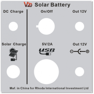 - ഈ സോളാർ ബാറ്ററി പായ്ക്കിന് ചാർജിംഗ് സ്രോതസ്സായി ഫോട്ടോവോൾട്ടെയ്ക്ക് പാനലുകൾ ഉപയോഗിക്കാം, അല്ലെങ്കിൽ ചാർജിംഗ് സ്രോതസ്സായി ഡിസി പവർ സപ്ലൈ, ഫോട്ടോവോൾട്ടായിക് പാനലിന്റെ വോൾട്ടേജും ചാർജർ വോൾട്ടേജും ശ്രദ്ധിക്കുക, മറ്റ് തരത്തിലുള്ള ഫോട്ടോവോൾട്ടെയ്ക്ക് പാനലുകളും ചാർജറുകളും ഉപയോഗിക്കരുത്;