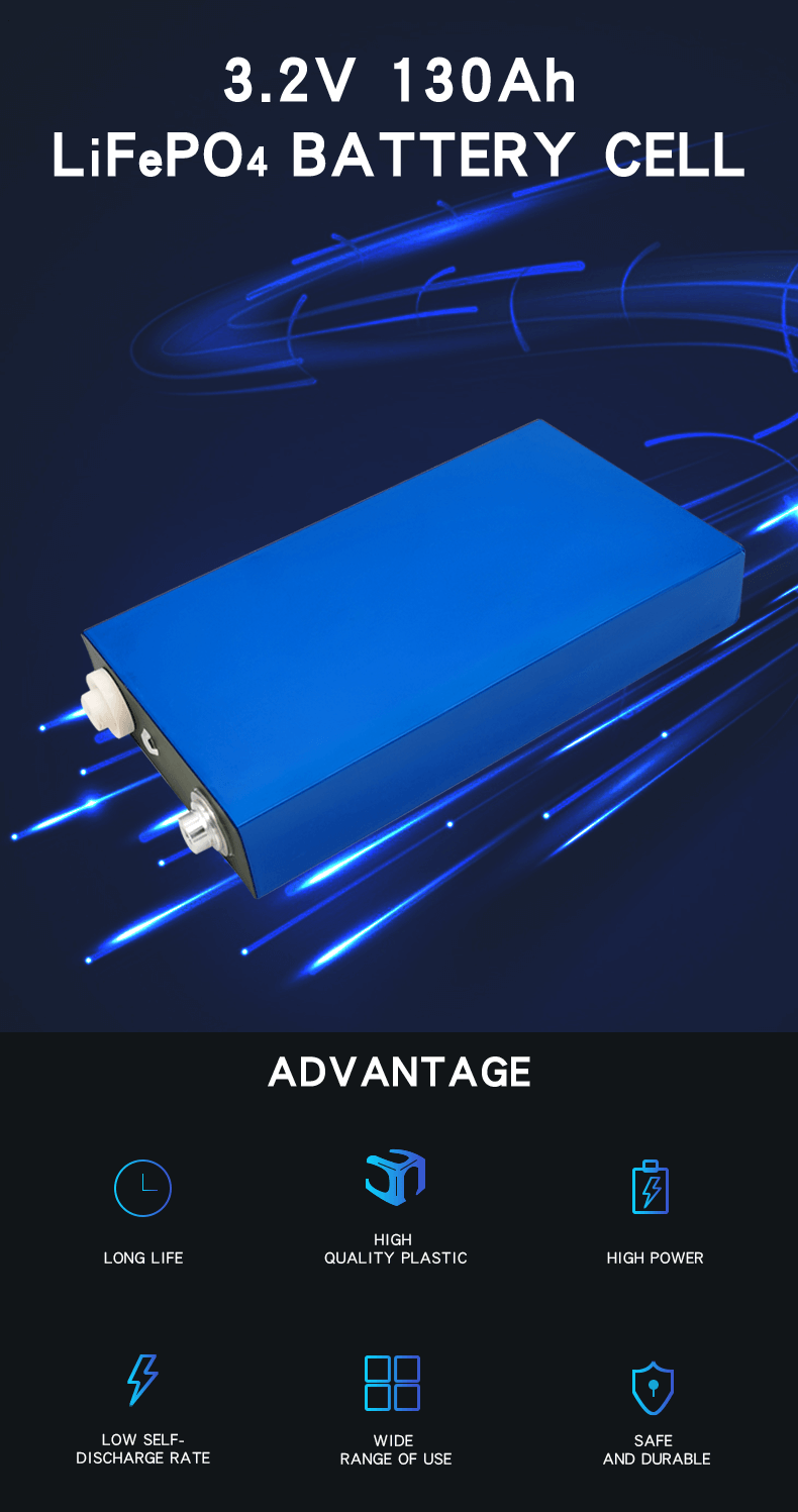 ഈ UL സർട്ടിഫൈഡ് 3.2V 130Ah LiFePO4 ബാറ്ററി സെല്ലിന് ഇനിപ്പറയുന്ന ഗുണങ്ങളുണ്ട്: