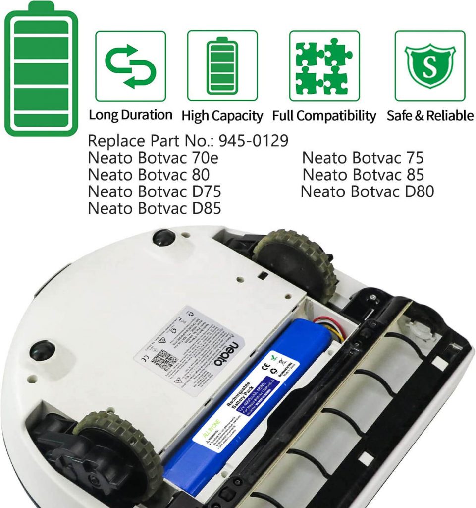 ടൂൾ മോഡലുകളുമായി പൊരുത്തപ്പെടുന്നു | ഇതുമായി പൊരുത്തപ്പെടുന്നു: * പാർട്ട് നമ്പർ മാറ്റിസ്ഥാപിക്കുക .: 945-0129 * Neato Botvac 70e * നീറ്റോ ബോട്ട്വാക് 75 * നീറ്റോ ബോട്ട്വാക് 80 * നീറ്റോ ബോട്ട്വാക് 85 * Neato Botvac D75 * നീറ്റോ ബോട്ട്വാക് ഡി 80 | |||
