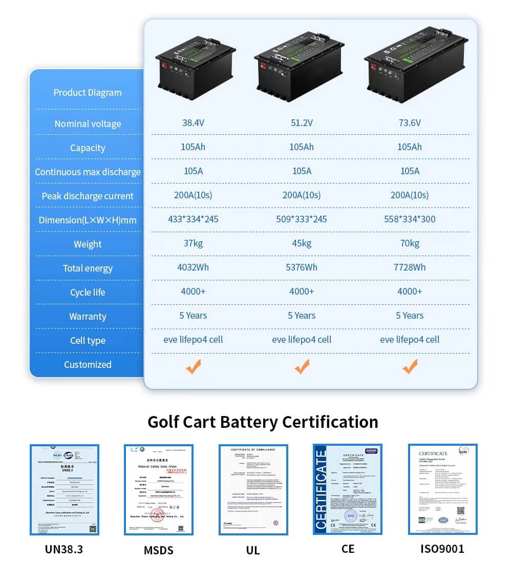 | ഉൽപ്പന്നം | ഗോൾഫ് കാർട്ട് ലിഥിയം ബാറ്ററി | |||
