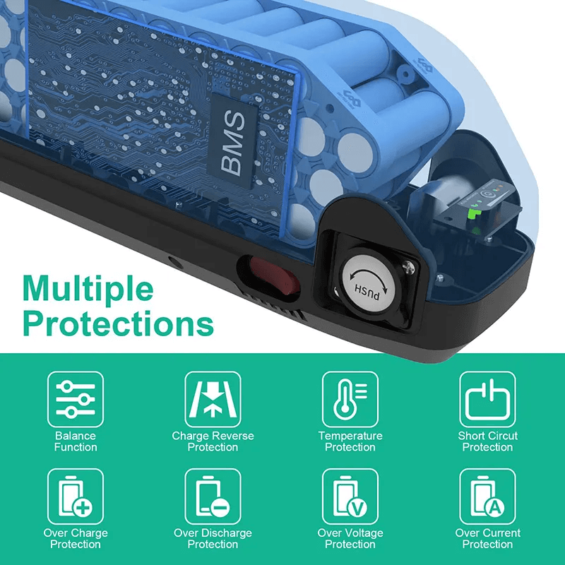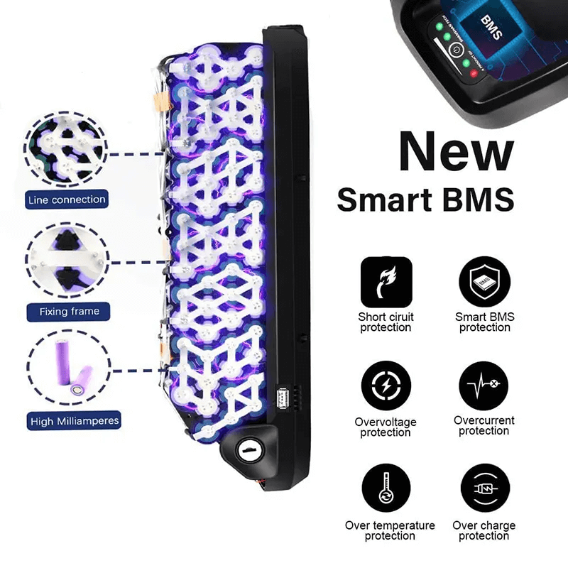 അകത്തെ സർക്യൂട്ട് ബോർഡ്, സെല്ലുകളുടെ ഒറ്റ ചരട് നിരീക്ഷിക്കുന്നതിലൂടെ, അമിത ചാർജ്, ഓവർ ഡിസ്ചാർജ്, ഷോർട്ട് സർക്യൂട്ട് എന്നിവയിൽ നിന്ന് സംരക്ഷണം നൽകുന്നു. കൂടാതെ ഇത് ഓരോ ബാറ്ററി പാക്കും സ്വതന്ത്ര ബാലൻസിംഗ് ഫംഗ്ഷൻ നേടുന്നതിന് പ്രാപ്തമാക്കുന്നു