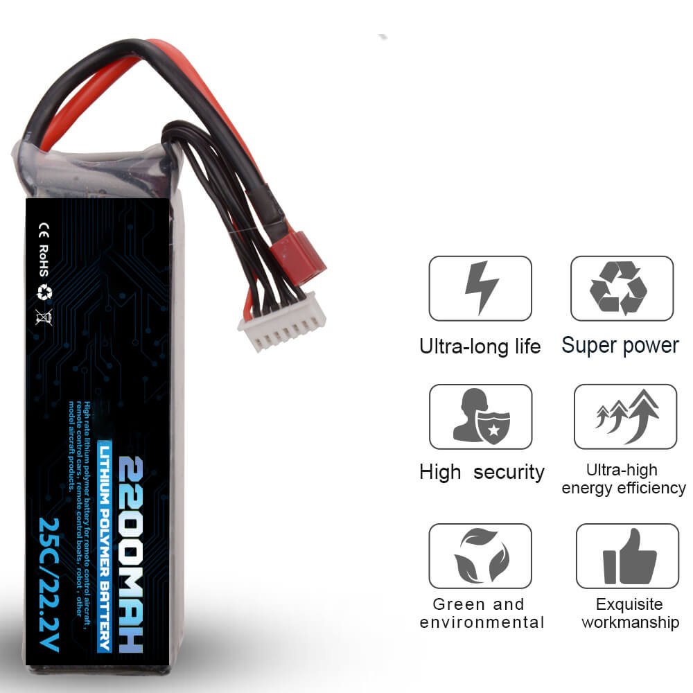 | ഡിസ്ചാർജ് (put ട്ട്പുട്ട്) ലീഡ് | ടി-പ്ലഗ് അല്ലെങ്കിൽ എക്സ് ടി 60 |