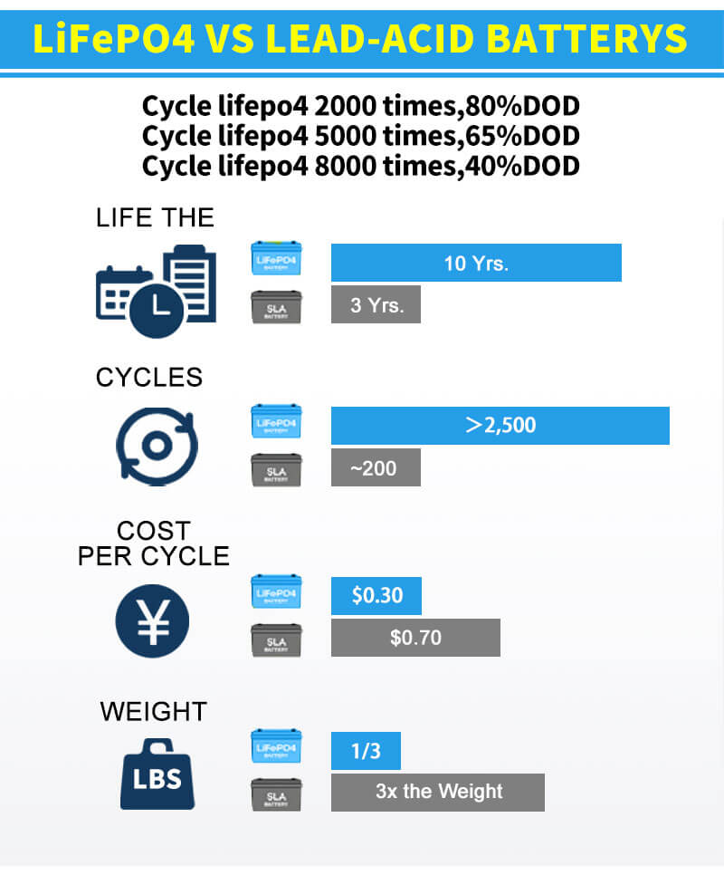 Conditions സാധാരണ അവസ്ഥയിൽ ലിഥിയം അയൺ ഫോസ്ഫേറ്റ് സെൽ, മികച്ച സുരക്ഷ, ആയിരക്കണക്കിന് സൈക്കിളുകൾ, 100% DOD എന്നിവയുടെ സാങ്കേതികവിദ്യ ഉപയോഗിക്കുന്നു.