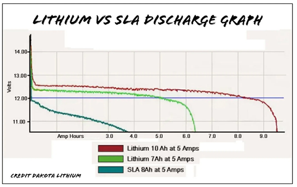 ലിഥിയം vs എസ്എൽഎ ഡിസ്ചാർജ് ഗ്രാഫ്