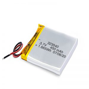 ലിഥിയം പോളിമർ ബാറ്ററി 450mah 3.7v റീചാർജ് ചെയ്യാവുന്ന ലിഥിയം അയൺ ബാറ്ററി / ലി-അയൺ ബാറ്ററി 323540 പിസിബിക്കൊപ്പം