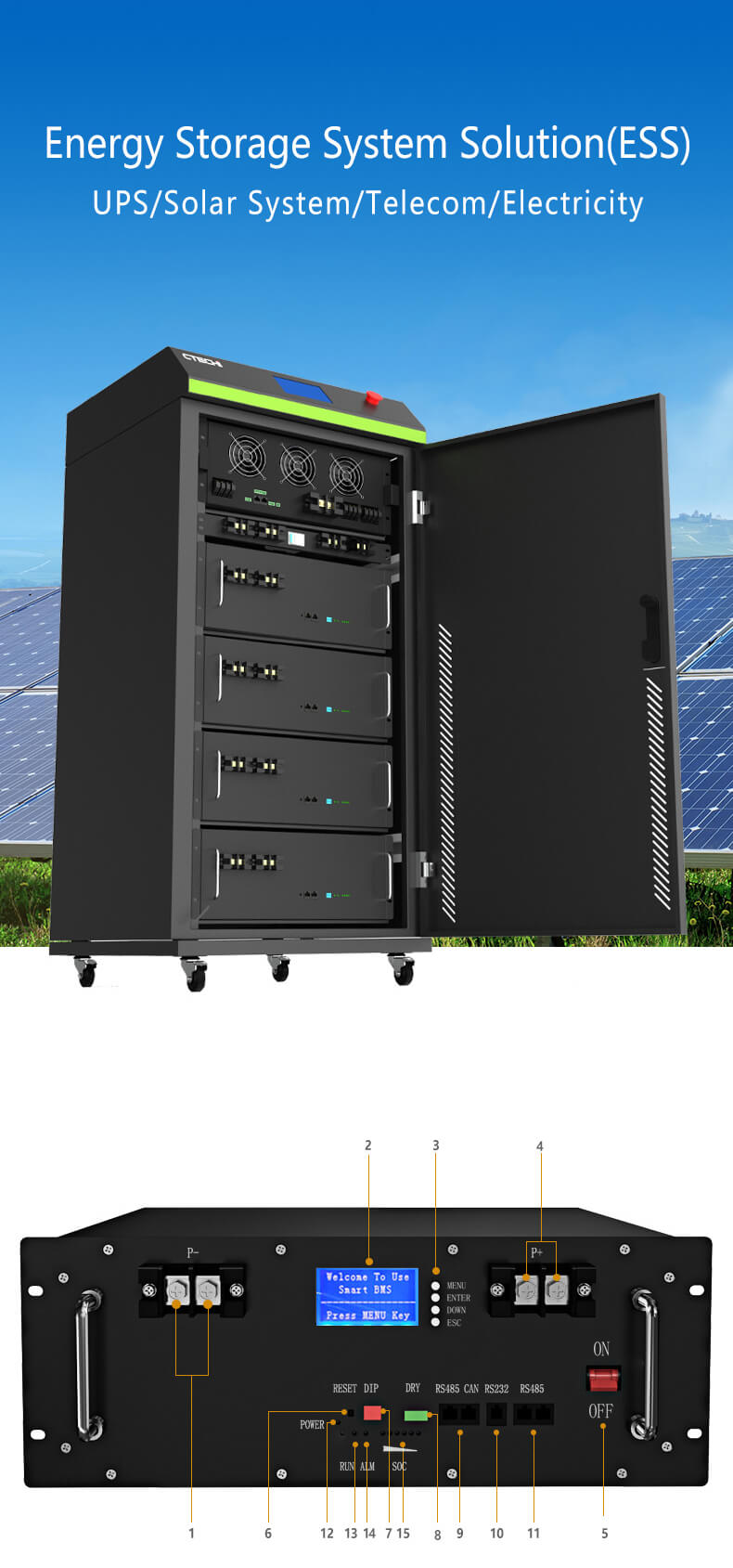 1 | നെഗറ്റീവ് സോക്കറ്റ് | ബാറ്ററി ഔട്ട്പുട്ട് അല്ലെങ്കിൽ സമാന്തര കാഥോഡ് ലൈൻ |