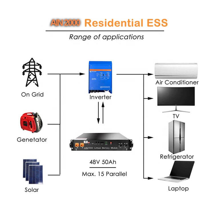 1.AIN2000 48v സോളാർ സിസ്റ്റം ബാറ്ററി സുരക്ഷയും മികച്ച സേവന ജീവിതവും ഉറപ്പുനൽകുന്നതിനായി ഉയർന്ന പ്രവർത്തനക്ഷമതയുള്ള LFP സെൽ 3.2V 50Ah, EV സ്റ്റാൻഡേർഡ് ഘടന എന്നിവ ഉപയോഗിച്ച് വികസിപ്പിച്ചെടുത്തിട്ടുണ്ട്.
